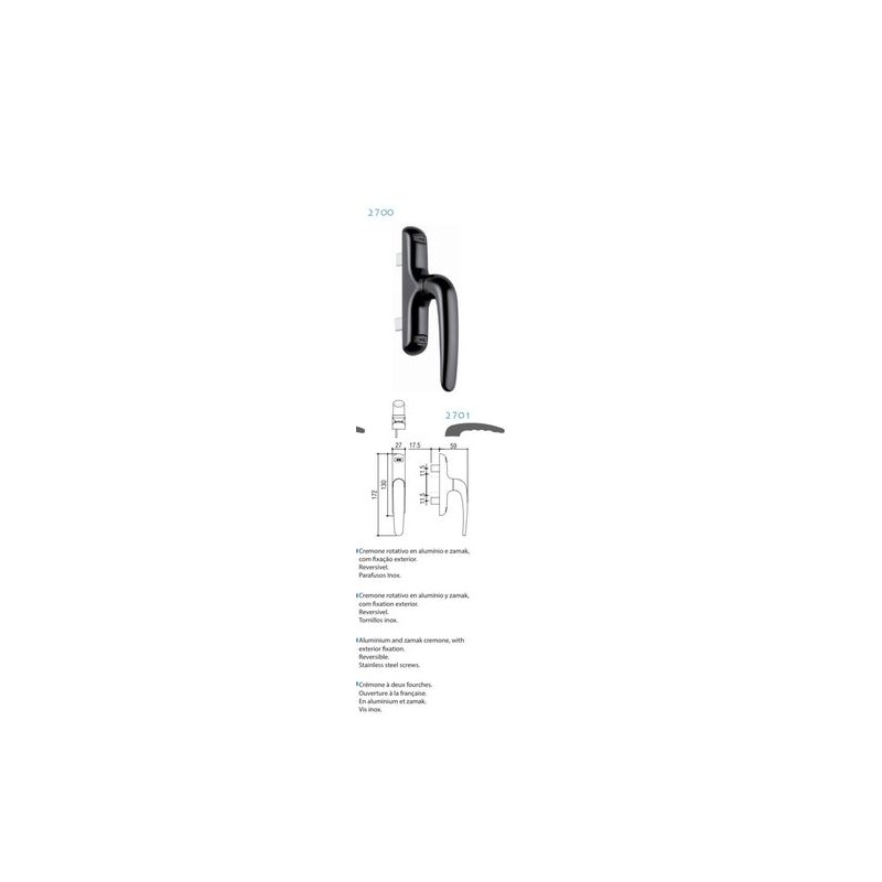 Cremone rotativo em alumínio e zamak, com fixação exterior.