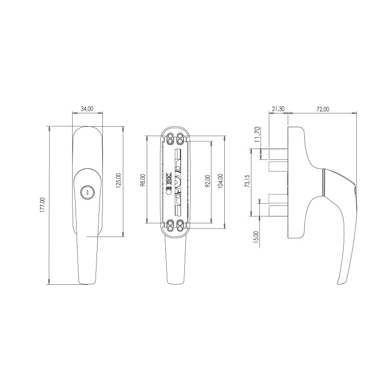 Materiais: Alumínio , aço inoxidável , poliamida e zamak.