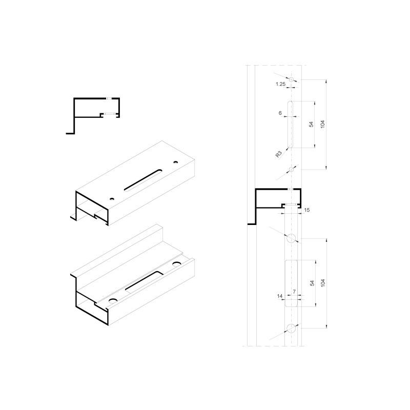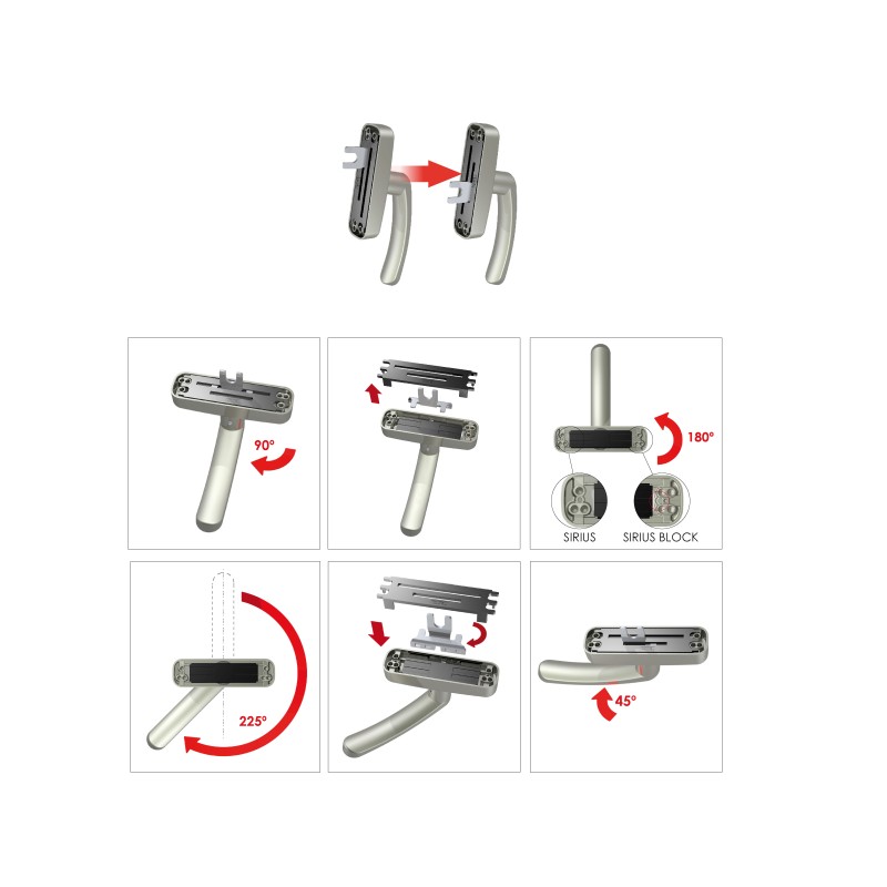 Por padrão , os cremones para a abertura de projeção são fornecidos sem o kit de transmissão (180100);