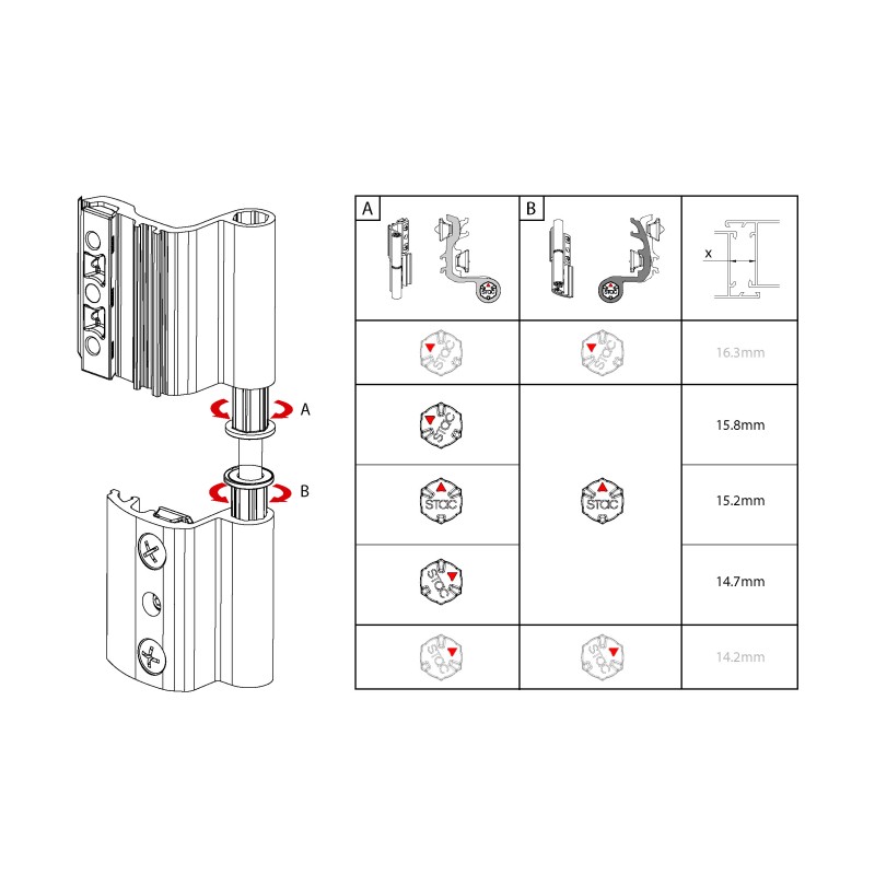 Ajuste lateral ± 0,5mm usando buchas excêntricas;