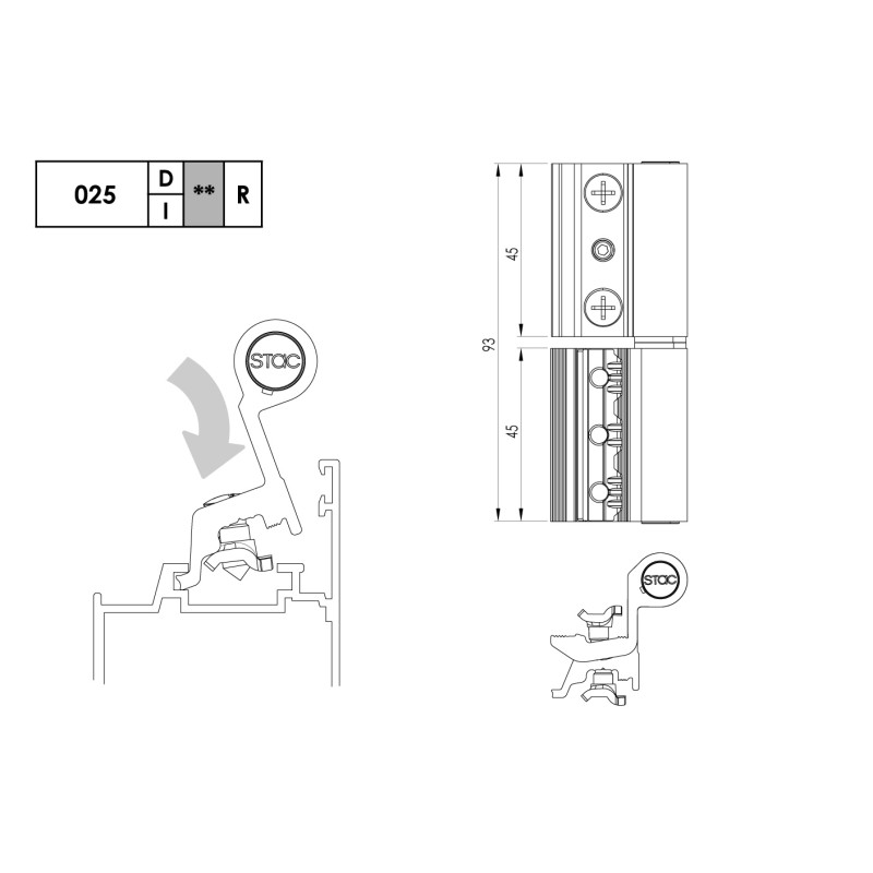 A pala da estrutura da dobradiça é universal para caber na maioria dos perfis de estrutura com Canal Europeu;