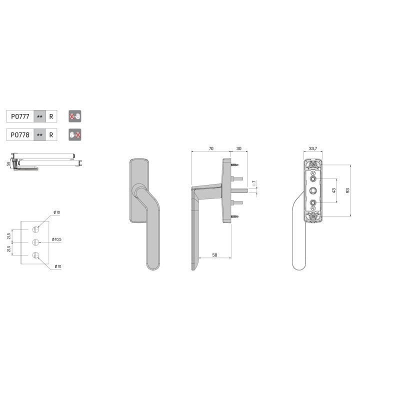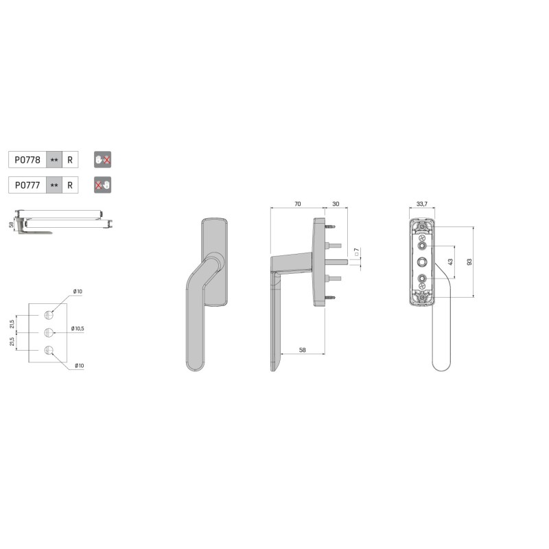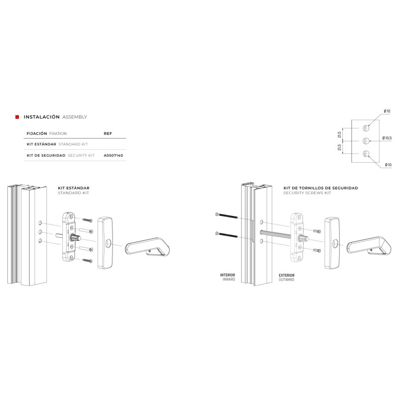 Puxadores angulares reforçados para janelas de correr com sistemas de fecho monoponto e multiponto.