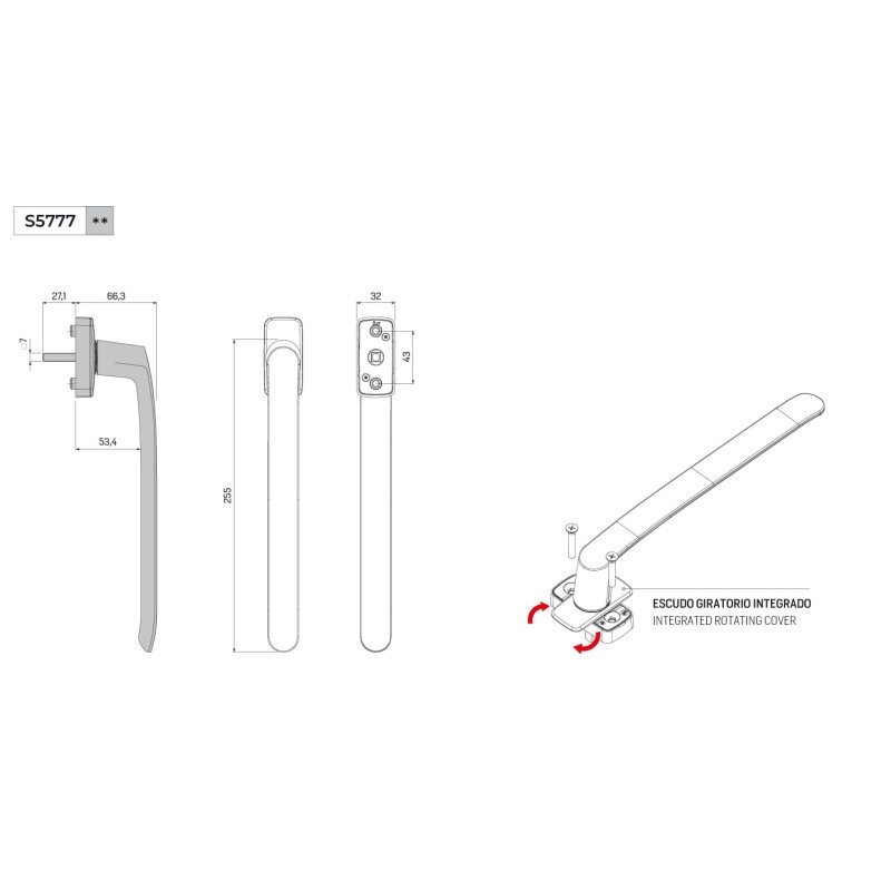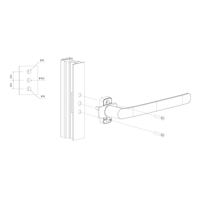 Puxador de comprimento especial para janelas de batente ou oscilobatentes.