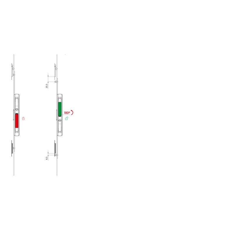 Puxador com desenho alinhado com o perfil da folha que permite o cruzamento de folhas em janelas de correr.