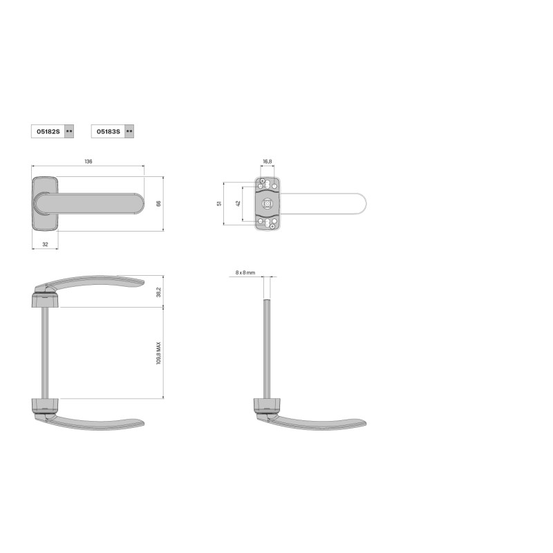 • Os puxadores não têm mão de abertura e são fornecidos com uma quadratura de 8x129mm;